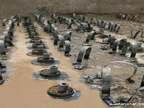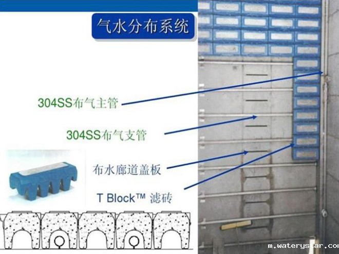 滤砖:采用混凝土浇筑而成外部HDPE(高密度聚乙烯)外壳,“T”型气水分布滤砖,提供反冲洗气水分配性能。