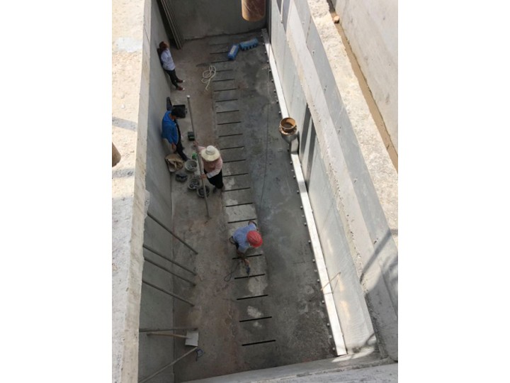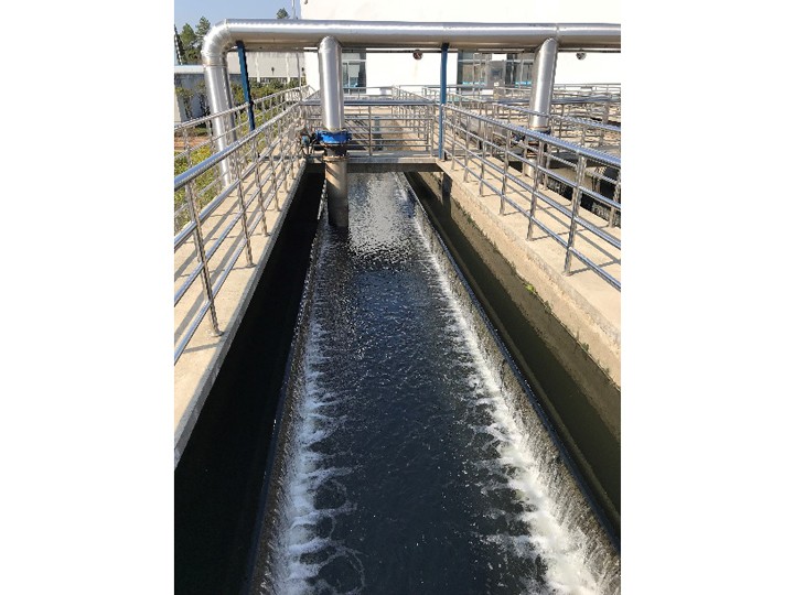 反硝化深床滤池池体,采用狭长廊道使进水均匀;滤砖结构使滤池反冲洗效果良好;反硝化过程中产生的氮气会使过滤产生气阻,通过驱逐氮气,确保滤池运行效果。