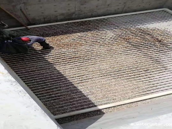 砾石承托层为天然鹅卵石,粒径3-38mm,厚度380-420mm,分5-6层分层排列,承托滤料。