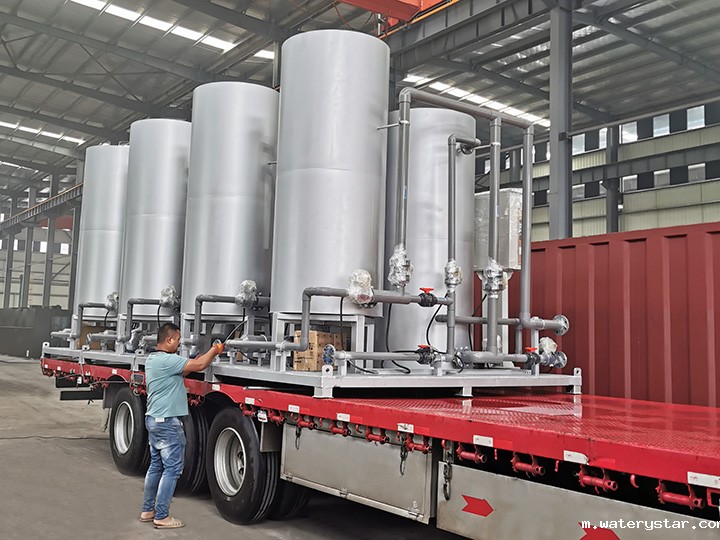 曝气后的水进入精滤罐,水中残留的细小矾花被滤层截留,出水浊度0.3~3NTU。滤层由4~7种滤料组成复合滤层,将固体微粒截留在滤层中,去污率达到98%以上。